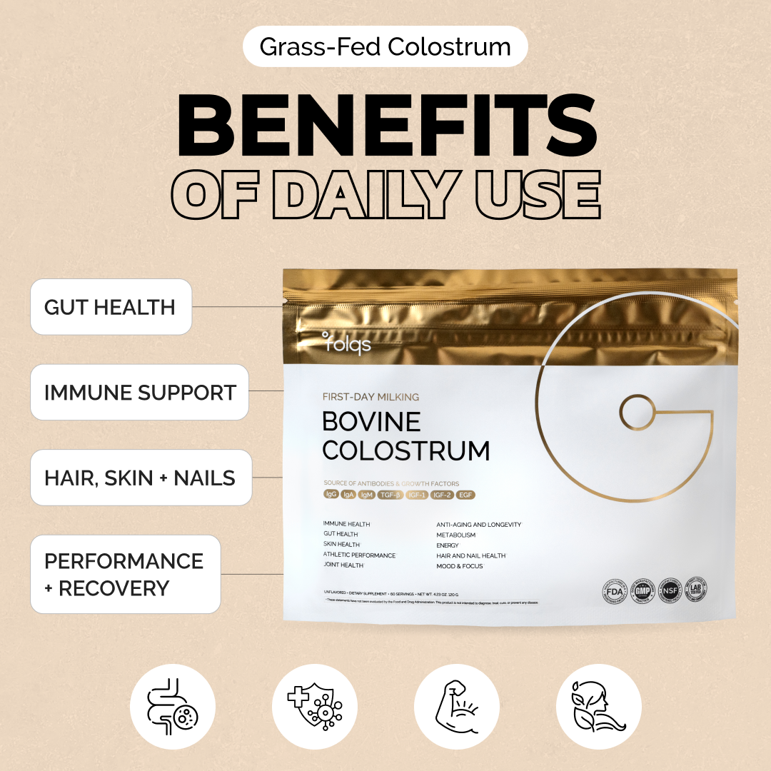 Simply mix one scoop of Folqs Bovine Colostrum with 6–8 oz of cold or room-temperature water, coffee, or a smoothie, and stir until it’s fully blended. Prefer a quicker option?