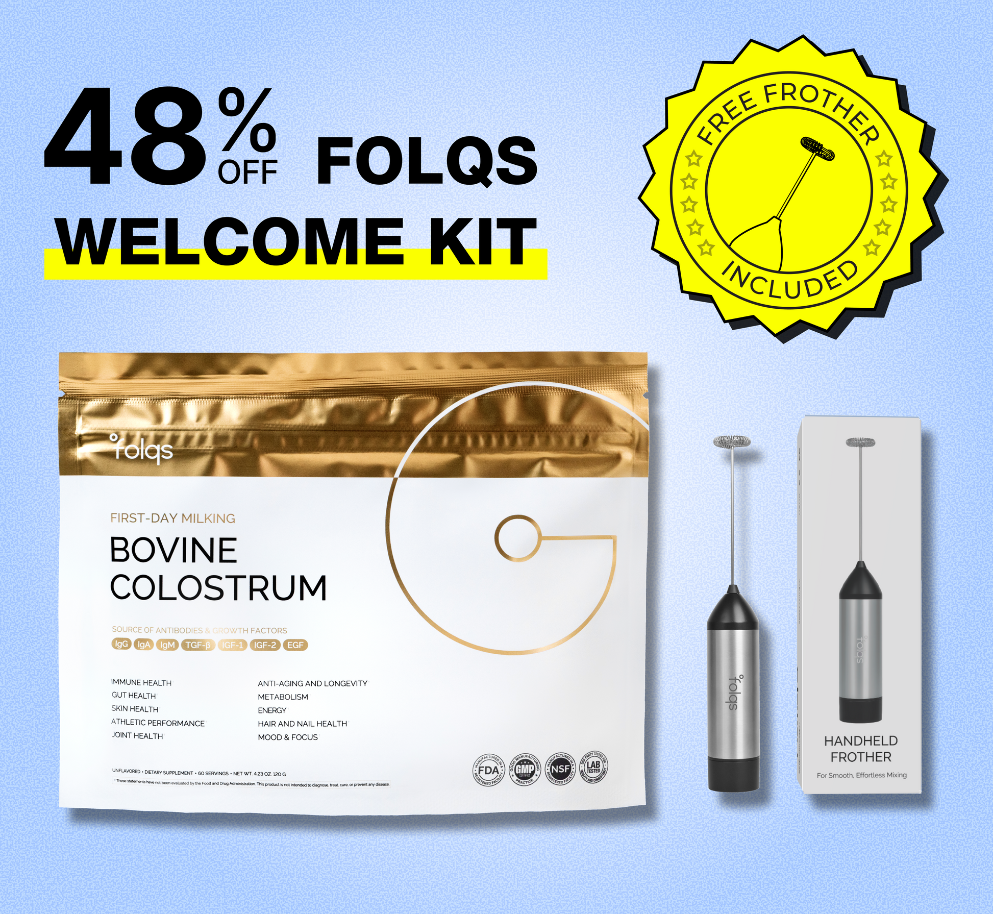 Folqs uniquely harnesses first-day colostrum, ensuring peak levels of nutrients that may strengthen immunity, enhance digestion, and support natural recovery. For adults, it offers targeted, natural support for stronger defenses, optimal gut health, and total-body wellness.